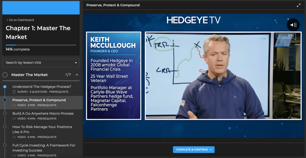 There are five “lessons” within Hedgeye University, each of which features a series of short 2-5 minutes videos teaching a core investing concept.